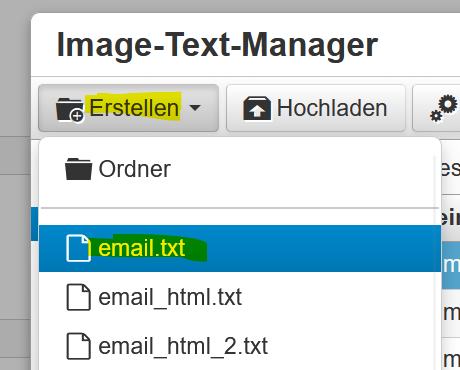 Klicken Sie rechts von "email_respond_url" auf den Button Text Manager -> Erstellen -> responder.txt