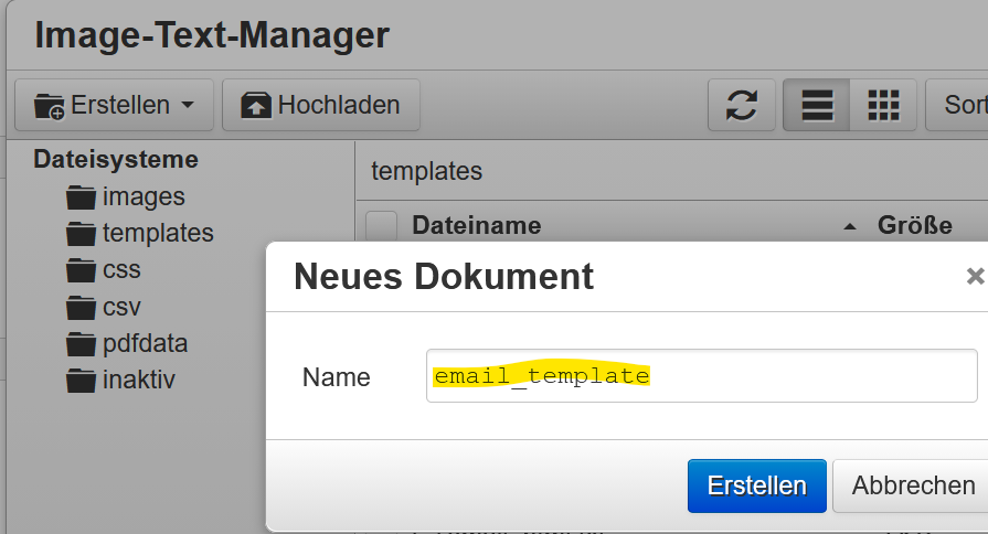Vergeben Sie nun einen Namen für die Datei z.B.email_template