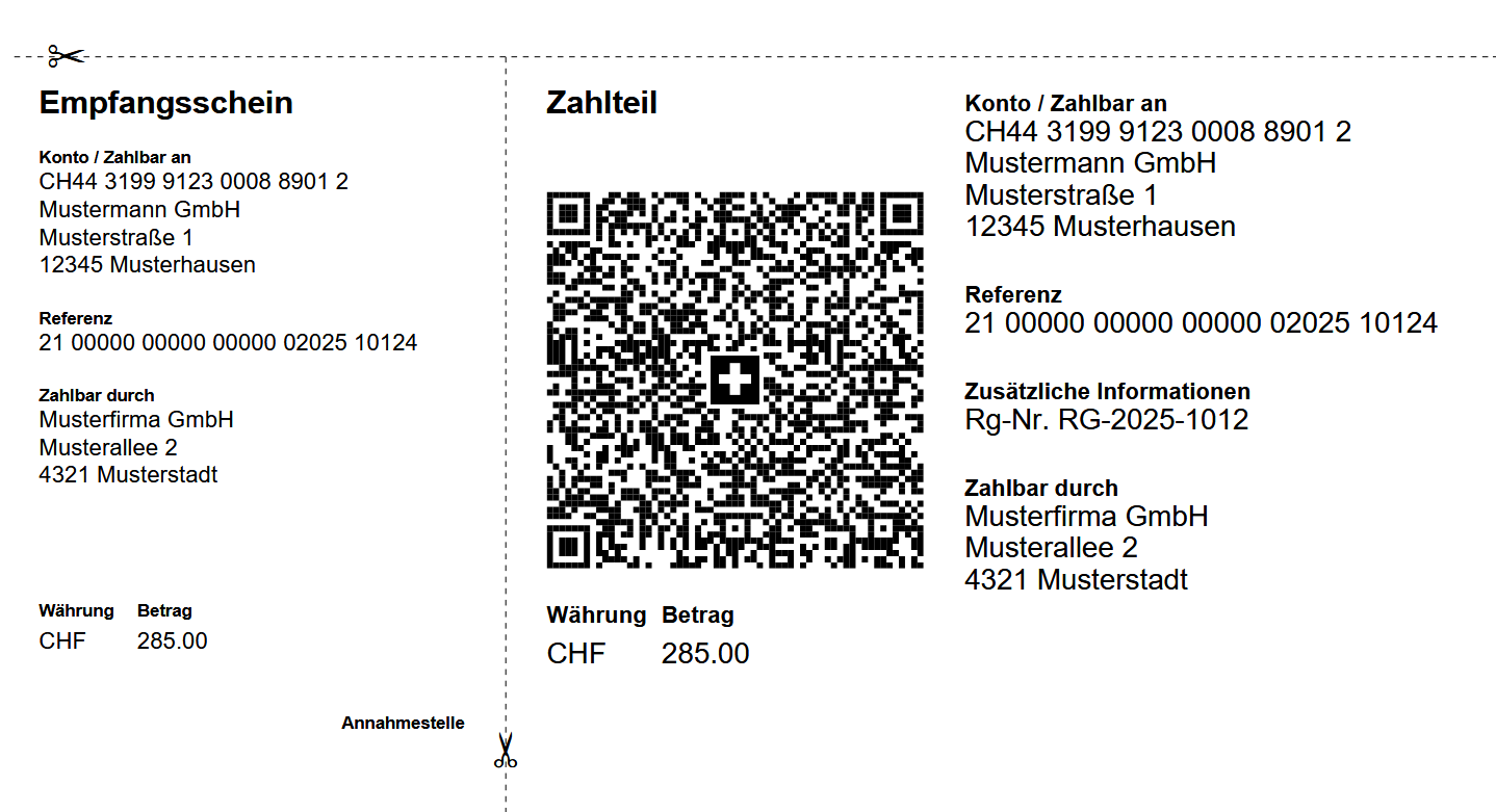 QR-Bill Einzahlungsscheine mit Schweizer QR-Code im Modul Rechnungserstellung PDF
