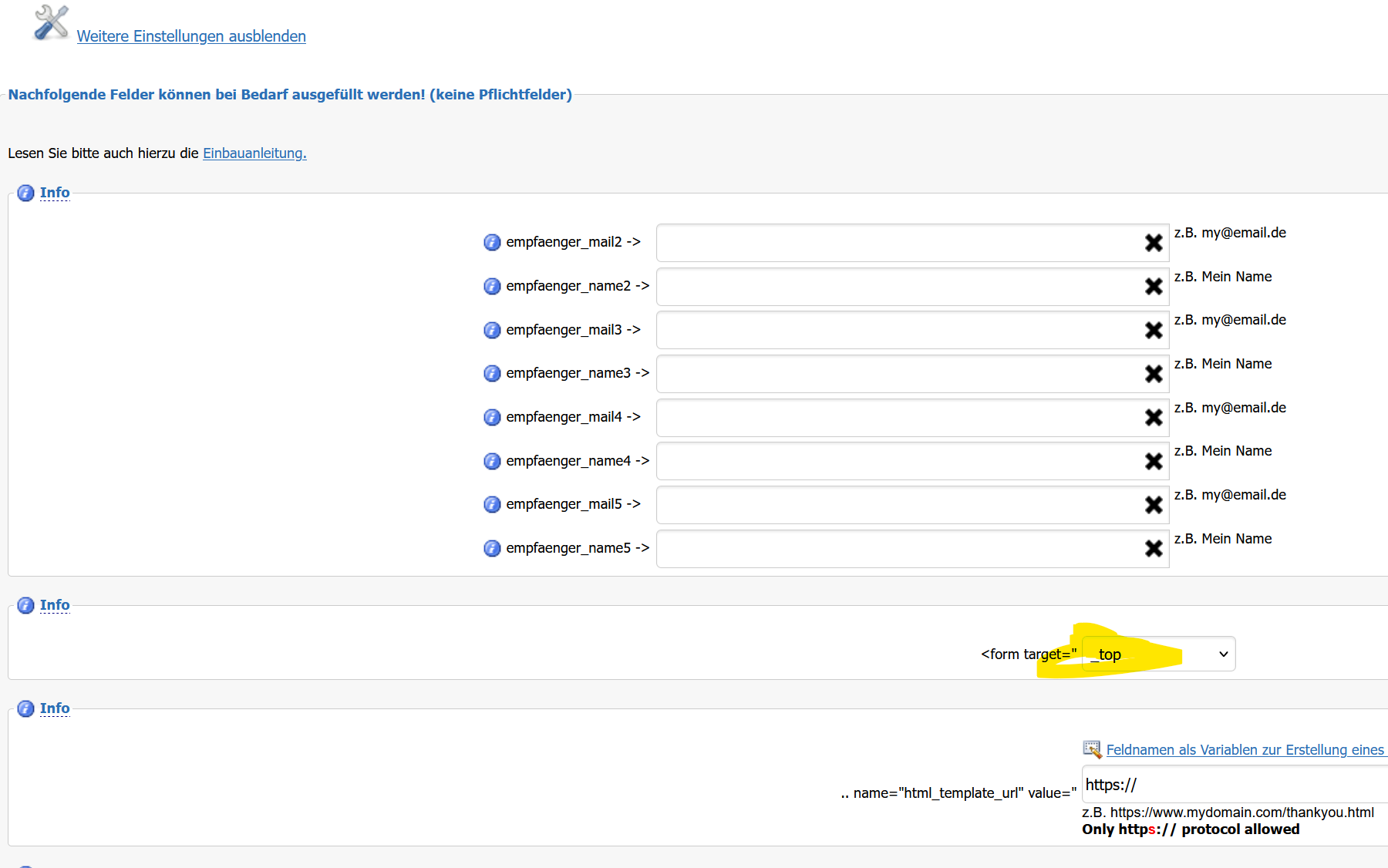 Frage zu Script oder iFrame Einbau eines Formulars - Danke Seite wird nicht geladen
