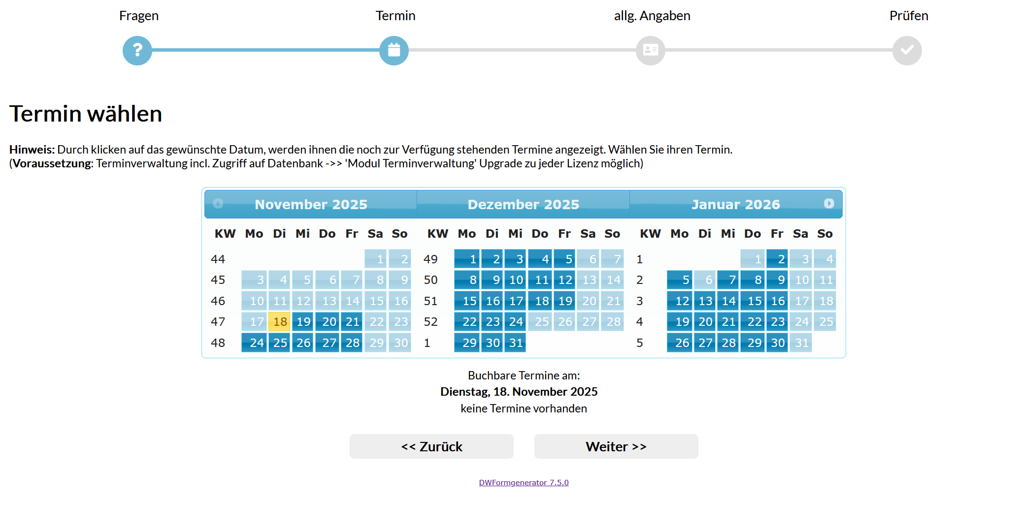 Voraussetzung: Kunden mit einer gültigen DWFormmailer Lizenz und Lizenz für Modul Terminverwaltung