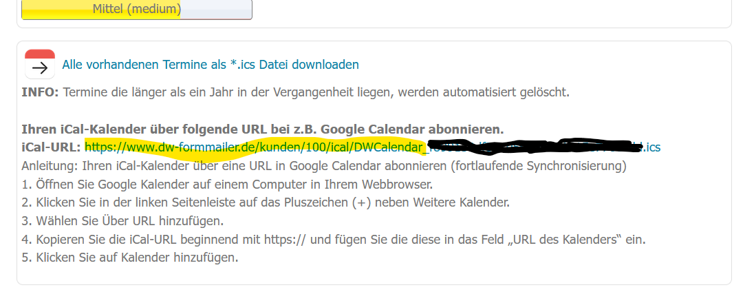 Ihren iCal-Kalender über folgende URL bei z.B. Google Calendar abonnieren.